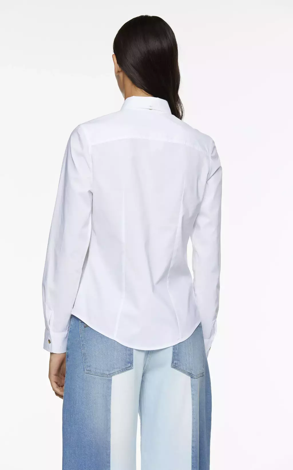 Camisa de mangas largas con cartera central y botones de pasta marmolados a la vista. Pinza de busto y de entalle en espalda. Canesú en espalda y bolsillo plaqué sobre delantero izquierdo con logo bordado a tono. Lleva ojal y botón en cuello espalda. Bordado de ojal a contratono en cuello y puños.