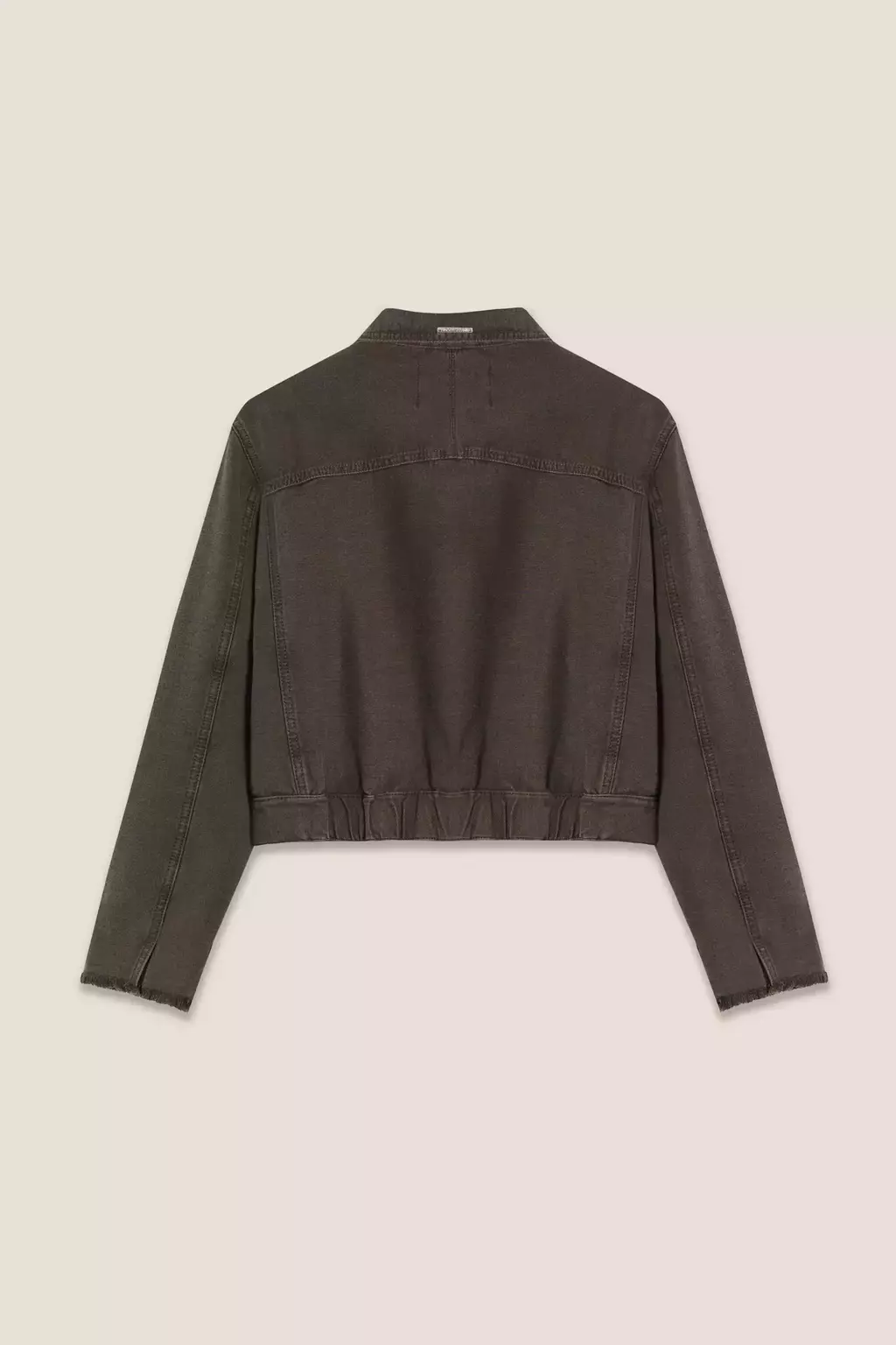 Campera de denim color chocolate con elástico en cintura trasera y puños al corte. Tejido 100% algodón. Boton y chapita pulidos espejo exclusivos de la marca.