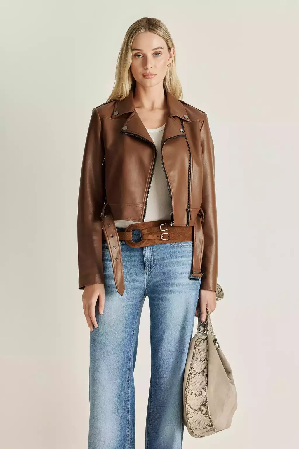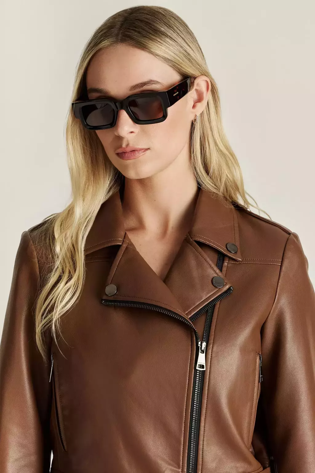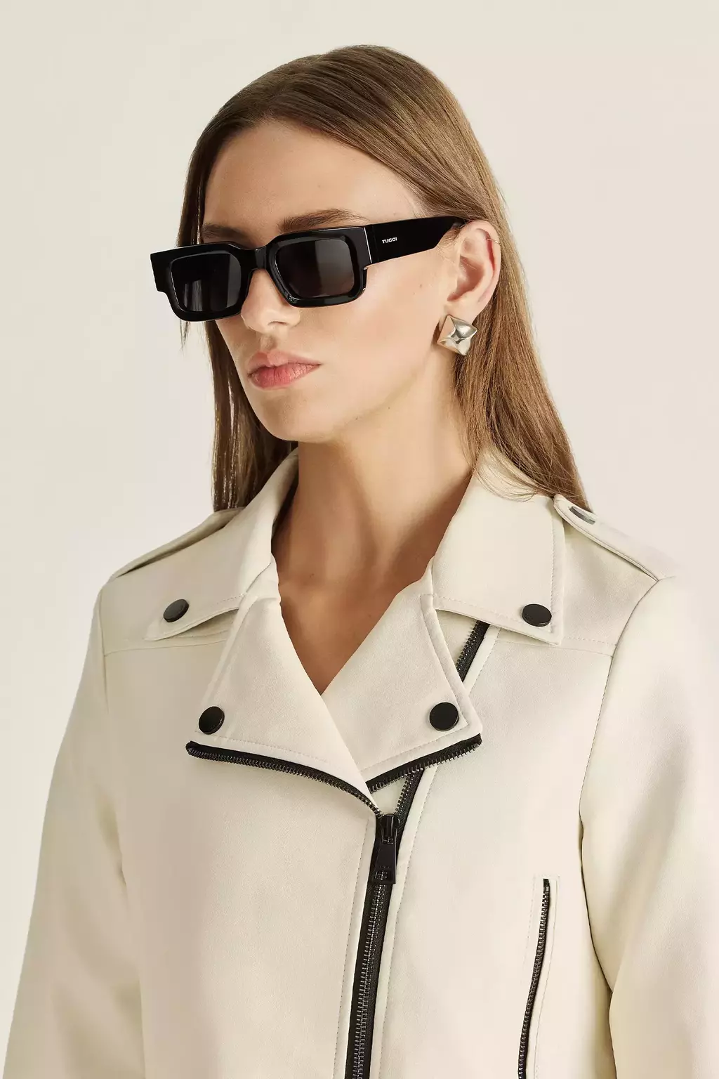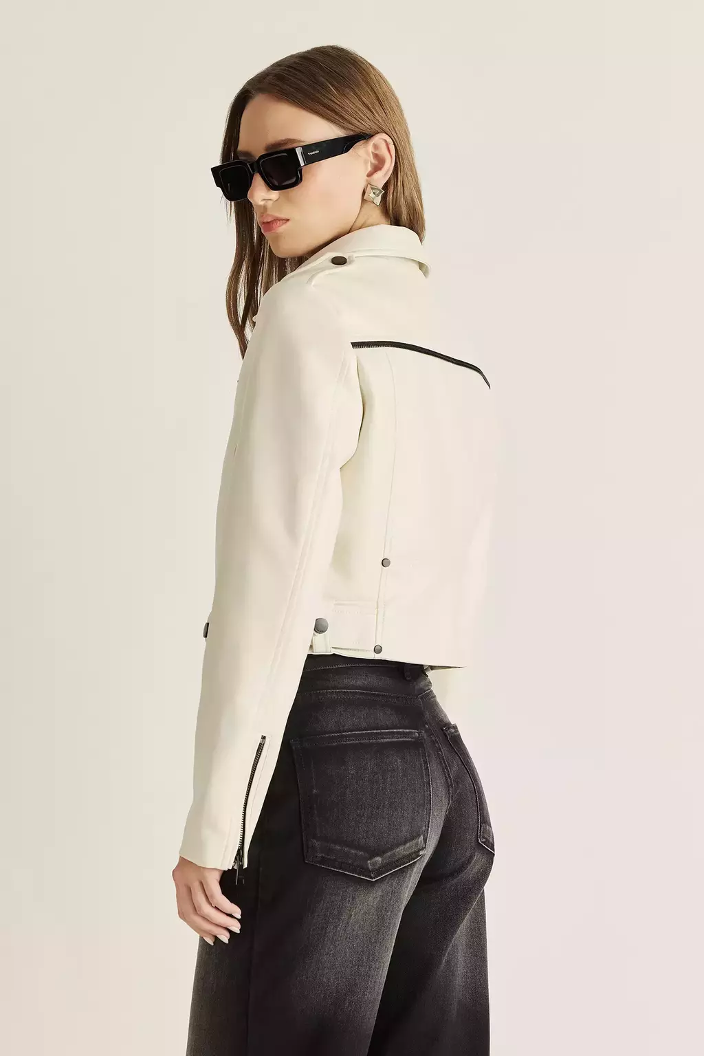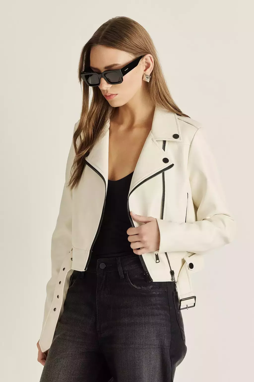 Campera de cuero ecológico con diseño moderno y versátil, tiene detalles distintivos generados con cierres. Permite lucirte increíble en cualquier ocasión, mientras que el material de alta calidad garantiza durabilidad y comfort.