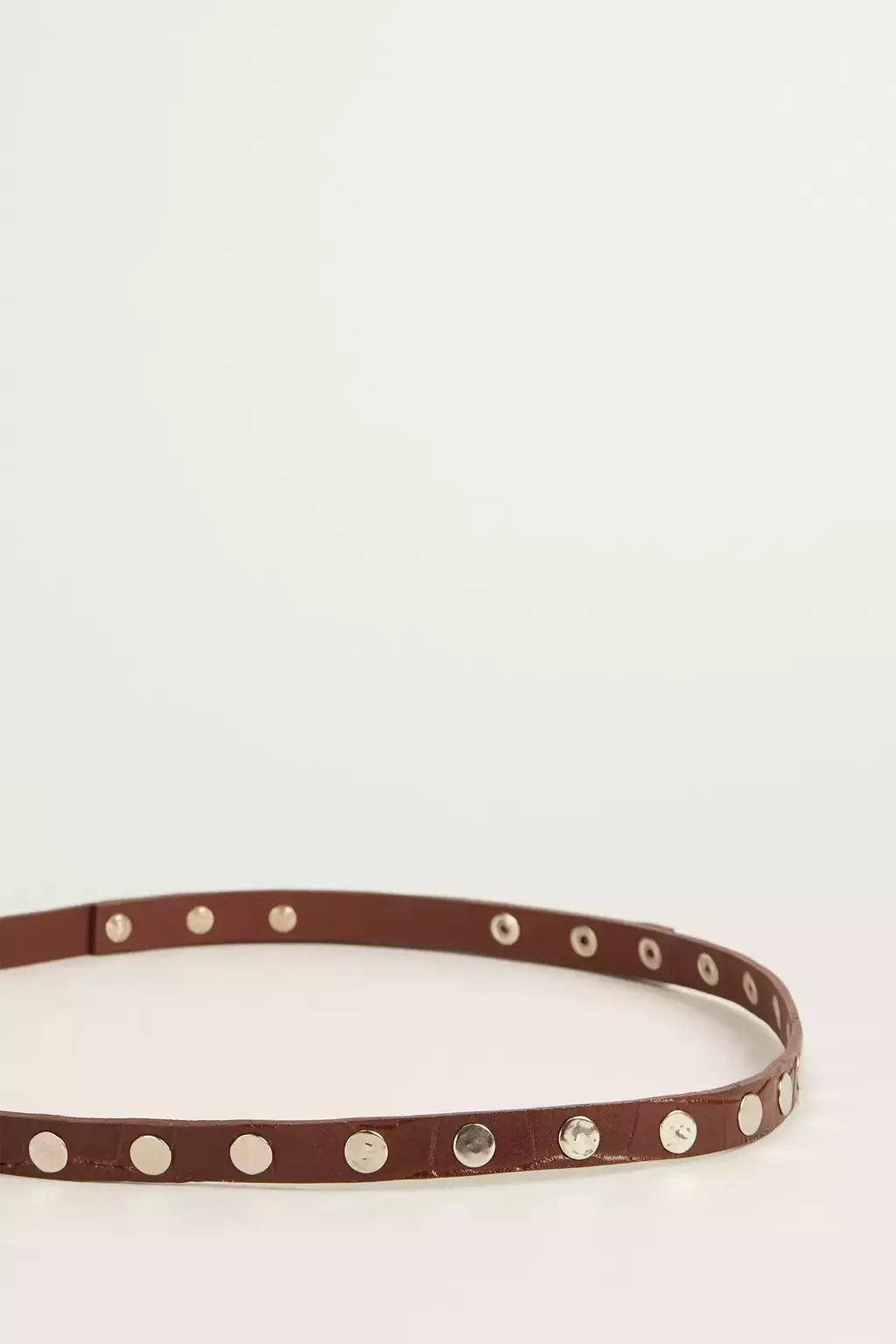 Cinturón confeccionado de forma 100% artesanal en cuero vacuno croco. Lleva diseño de remaches golpeados a lo largo de toda la lonja. ¡Usalo para levantar cualquier look! Ancho:1,5cm