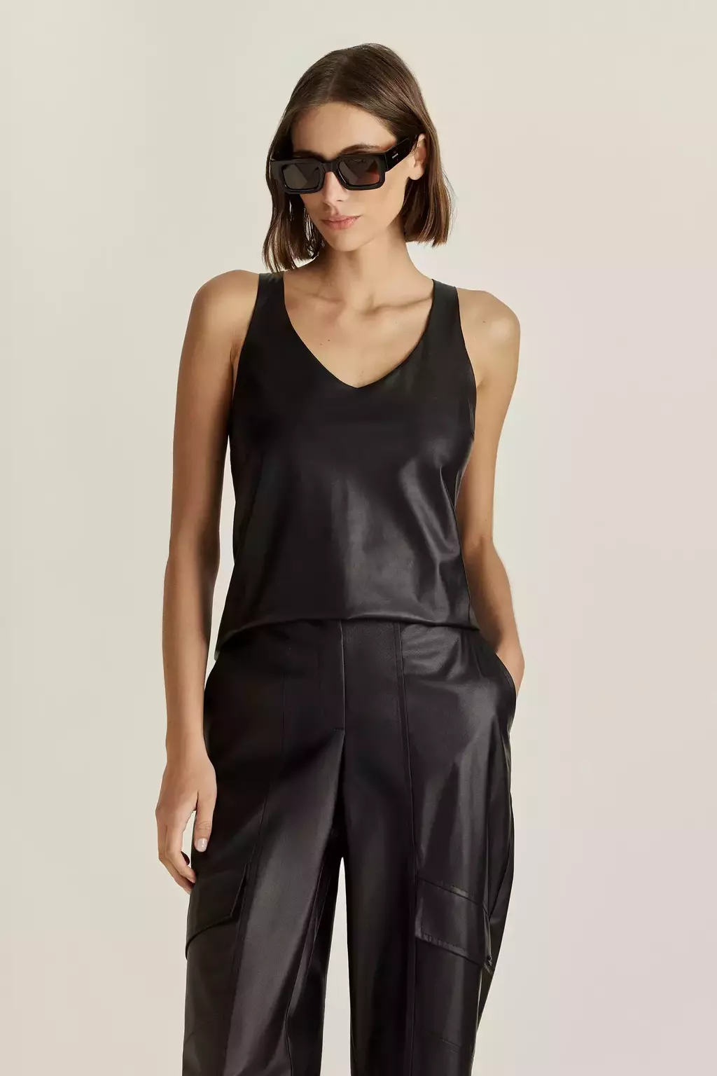 Musculosa confeccionada en género con acabado engomado, combinada con género de punto al tono en la espalda. Completá tu look canchero con nuestro Pantalón Frida.