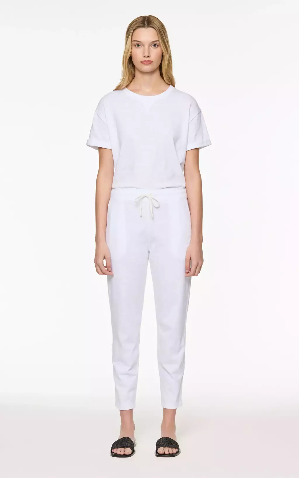 Pantalón de punto con cintura en rib y cordón ajustable. Tiene bolsillos laterales y en espalda. Lleva logo en flock en el delantero. Producto fabricado en perú. Perfecto para combinar con camisas o tops, y lograr un look de verano cómodo, moderno y equilibrado.