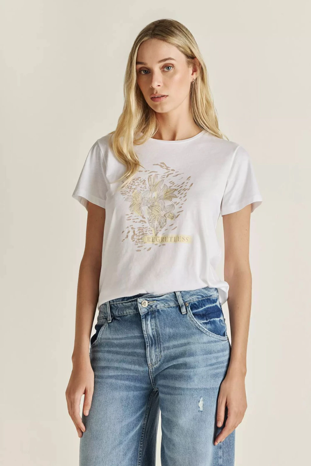 Remera confeccionada en Pima 100% algodón con estampa exclusiva de la colección Verano 26 en combinación con foil.