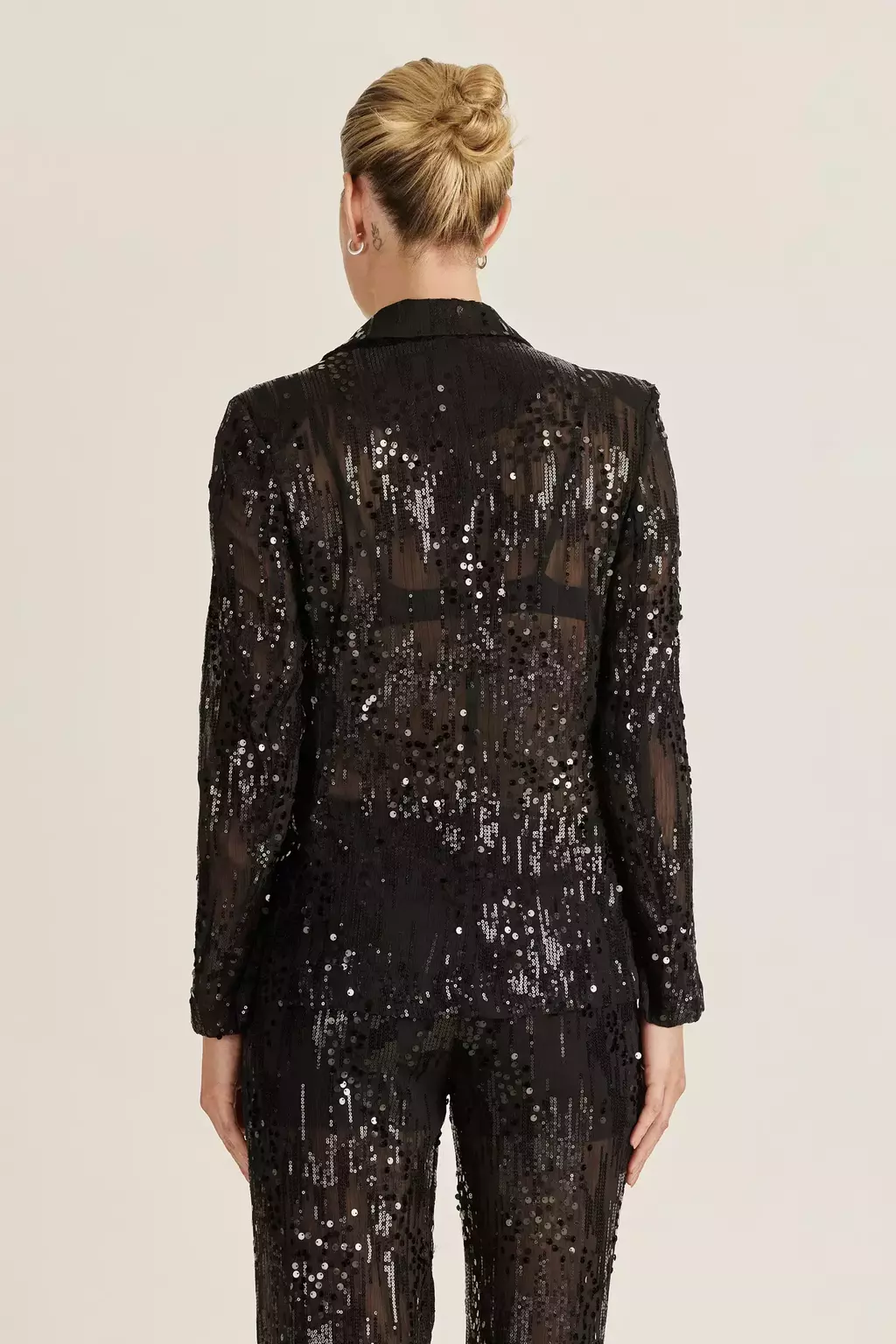 Este saco de gasa bordada con lentejuelas aporta toda la elegancia y sensualidad gracias al brillo y transparencia. Con este saco vas a destacar en cualquier evento.